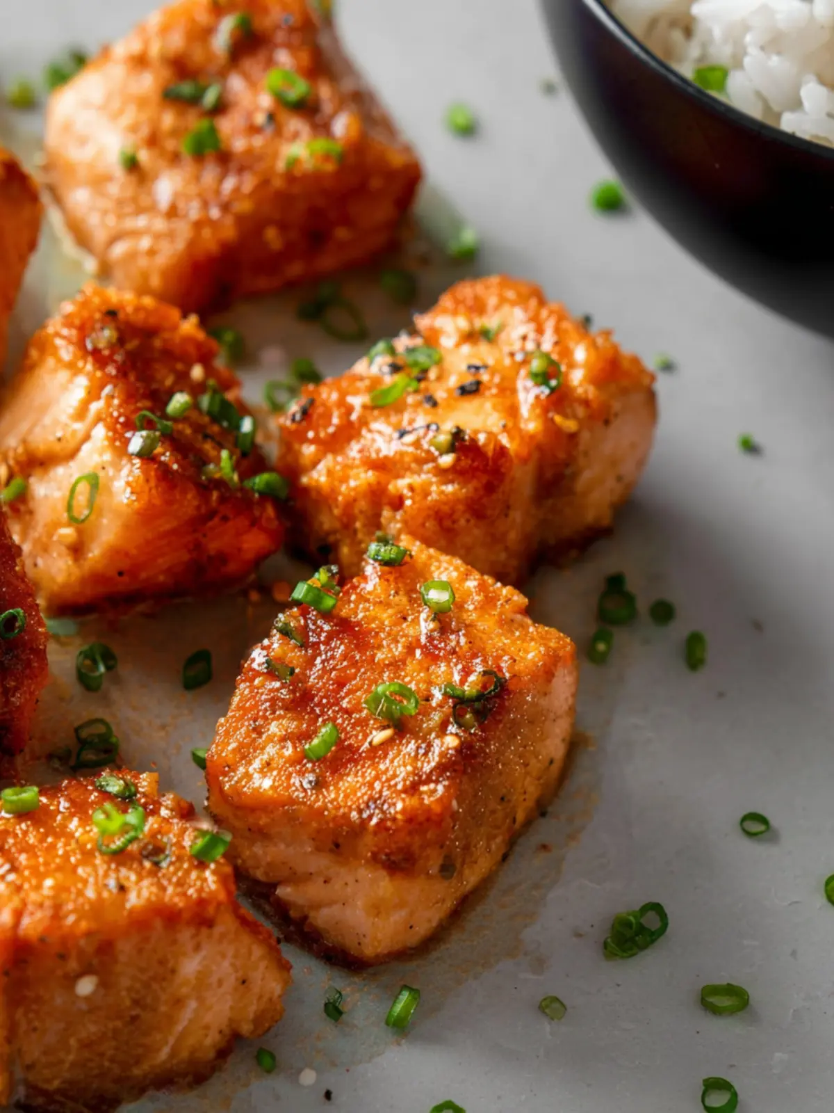 Olive Oil: A drizzle of olive oil adds richness and helps develop a crispy texture without overpowering the salmon’s natural flavor. It also aids in the seasoning sticking to the bites. Opt for extra virgin olive oil for its robust taste and health benefits.