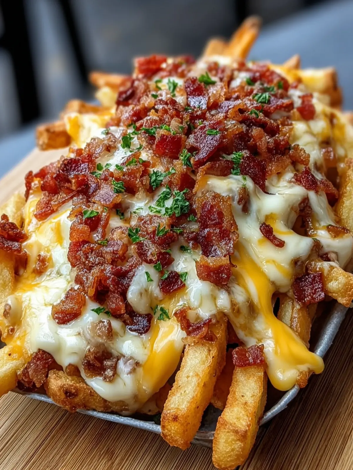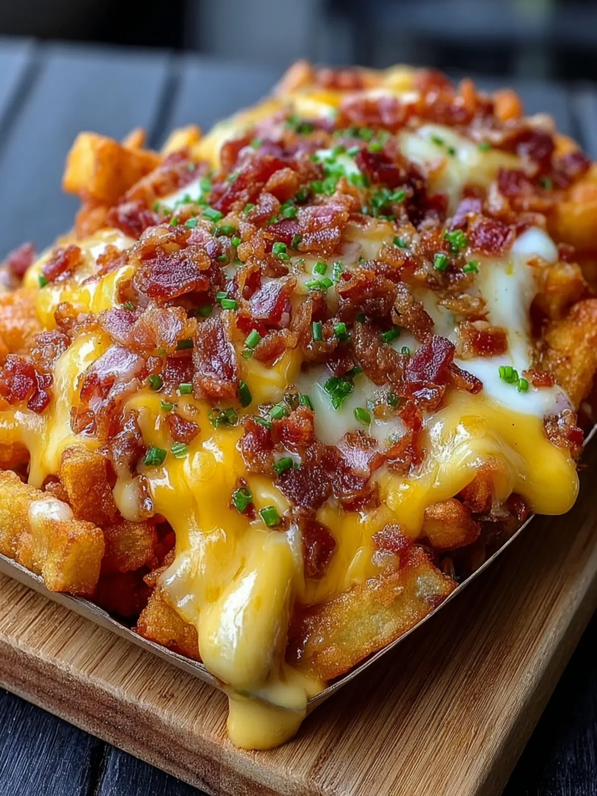 Picture a crispy, golden bed of fries smothered in gooey cheese, topped with crunchy bacon bits, and finished with a drizzle of creamy ranch or a sprinkle of green onions. These fries embody all that is decadent and delicious, making them an instant crowd-pleaser whether you’re hosting friends or treating yourself after a tough week.