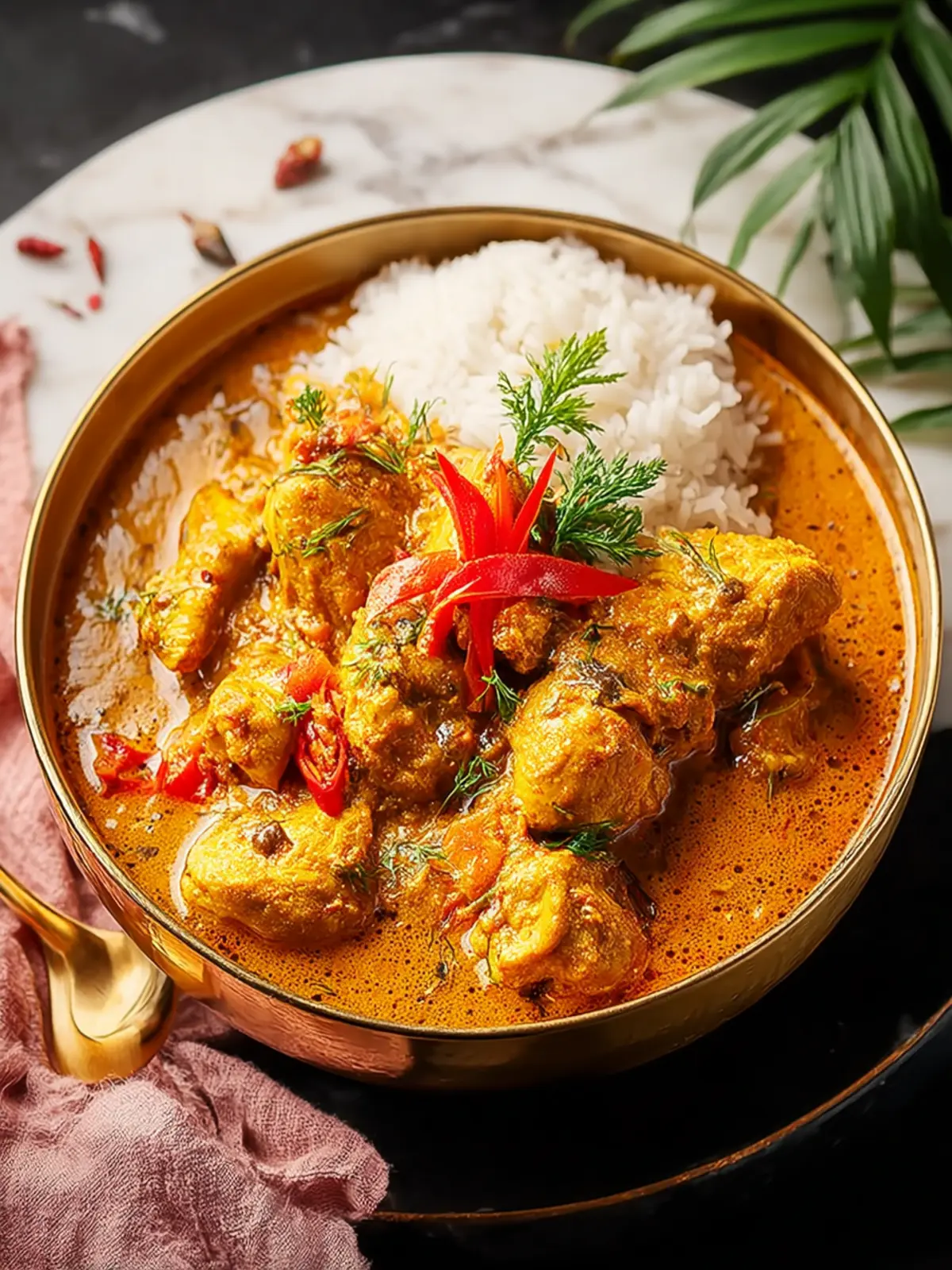 This dish beautifully balances flavors and textures. The creamy coconut milk envelops the succulent chicken, while the spices – often a harmonious mix of cumin, coriander, turmeric, and chili – elevate each bite to new heights. It’s not just about taste; it’s about the experience. Whether you’re cooking for yourself, throwing together a dinner party, or meal prepping for the week, this dish marries simplicity with indulgence.