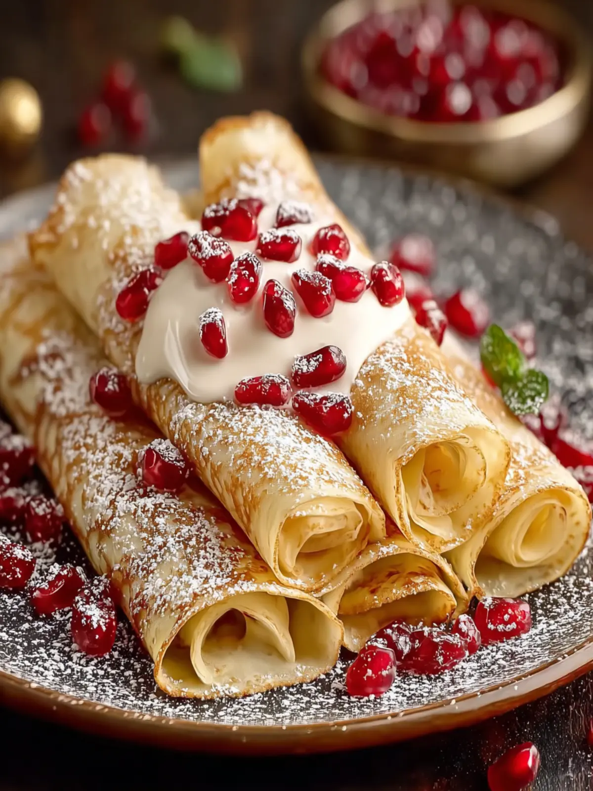 • Stunning Presentation: Topped with vibrant pomegranate arils, these crepes are not only tasty but visually appealing, making them the star of your holiday table.