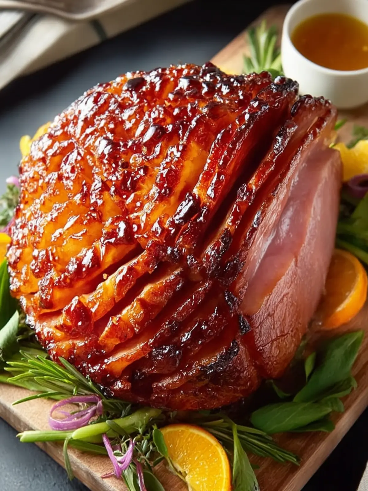 This glazed ham recipe features a sweet and tangy sauce made with brown sugar, orange marmalade, and Dijon mustard. Perfect for special occasions!