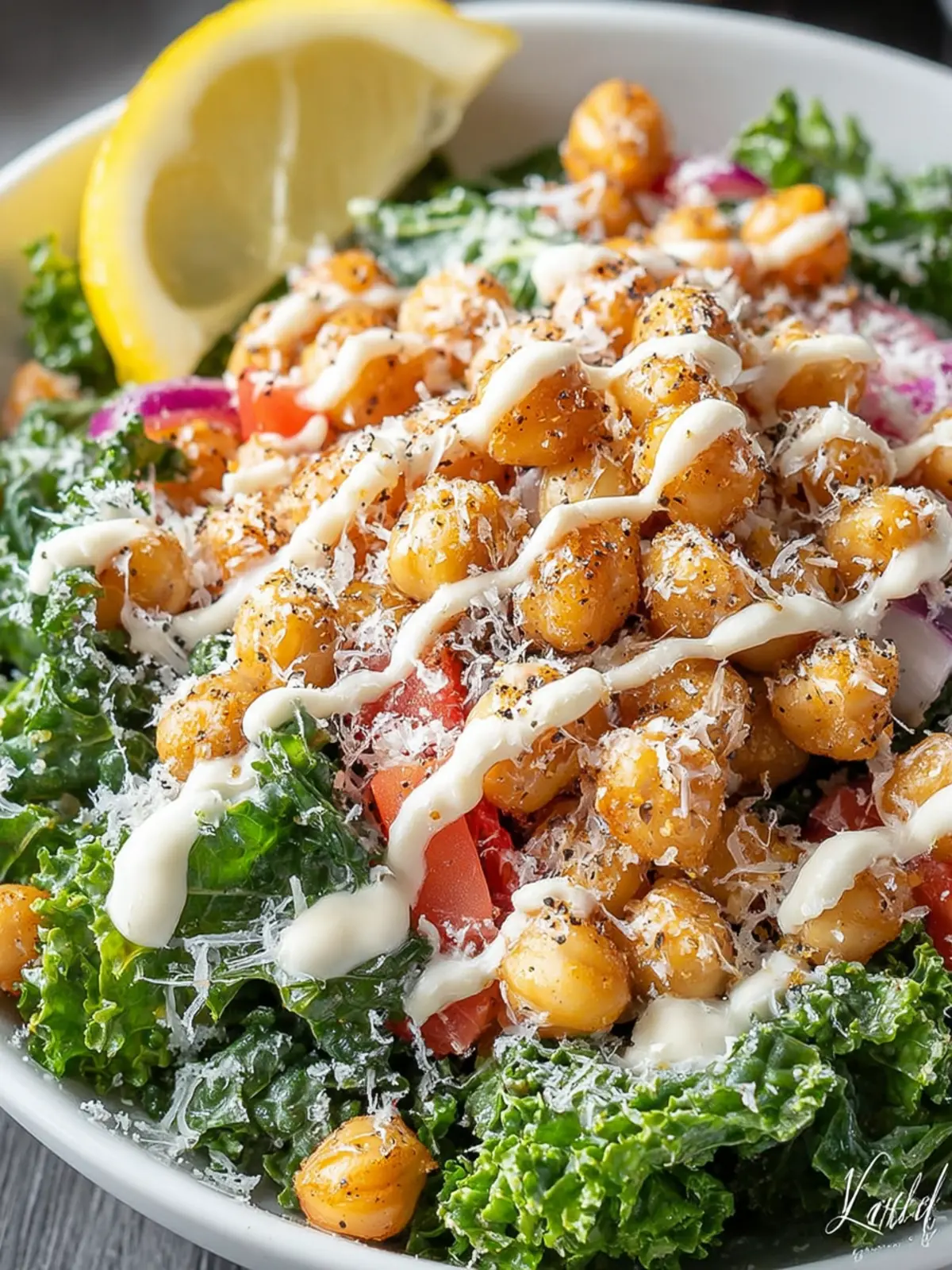 Diving into a Flavorful Kale Caesar Salad with Roasted Chickpeas is not just about enjoying a meal; it’s about making a conscious choice to nourish your body with vibrant, wholesome ingredients. This salad transforms the classic Caesar into a nutrient-packed powerhouse, thanks to the robust kale and protein-rich chickpeas. The creamy dressing elevates every bite, while the roasted chickpeas provide added texture and crunch. As you savor this delicious dish, remember that healthier choices can be utterly satisfying. So, whether you’re looking for a light lunch or a side dish for dinner, this salad is bound to be a hit!