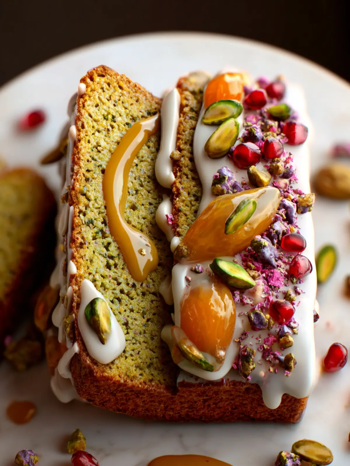 A moist and delicious gluten-free cake featuring ground pistachios and a sweet glaze.