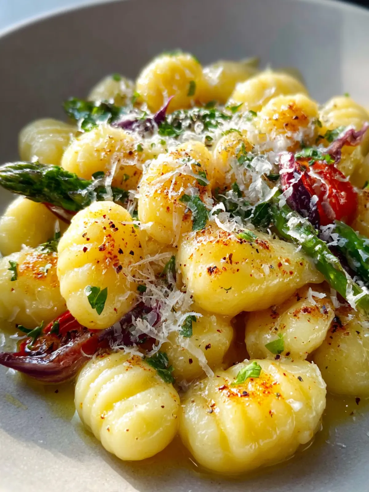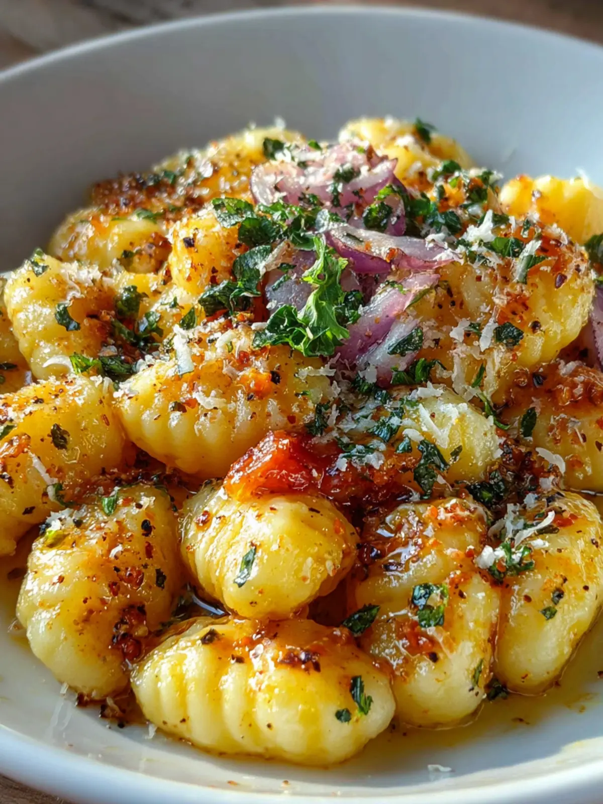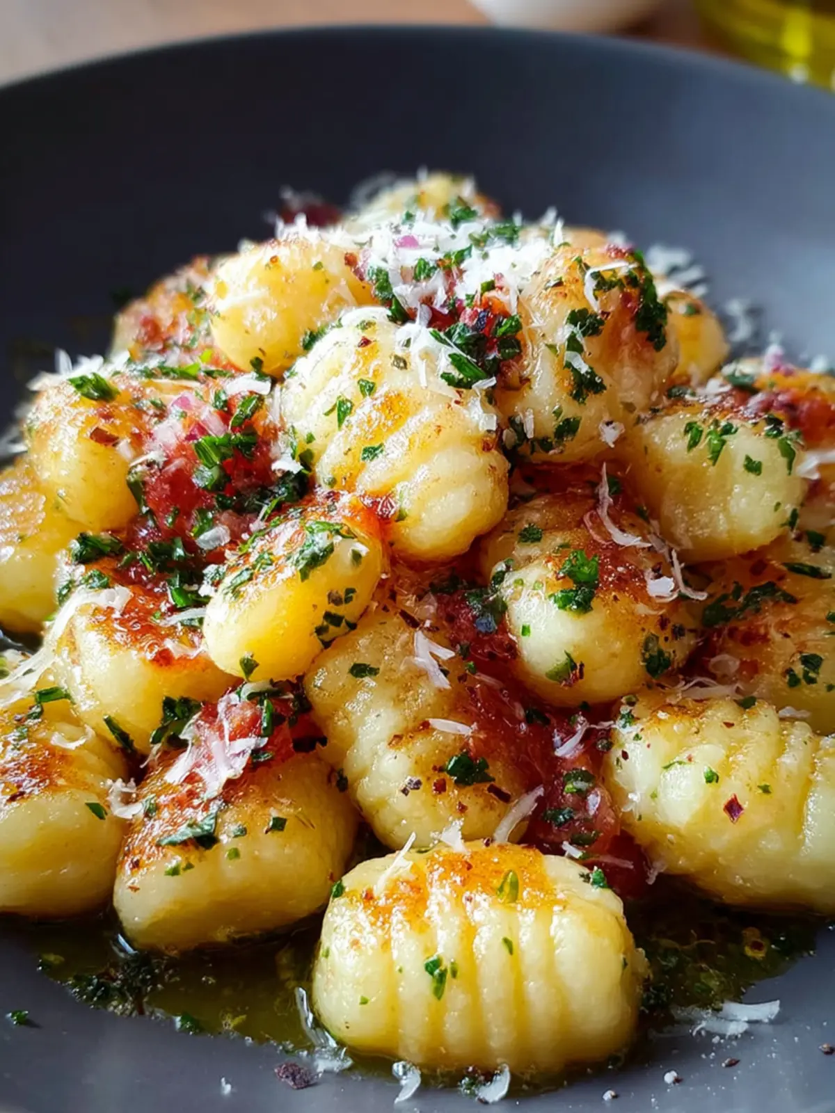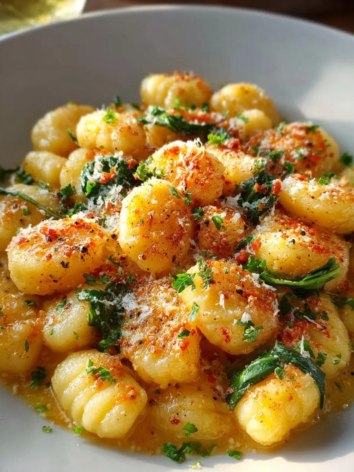 Imagine the warm, earthy flavors of autumn with pumpkin gnocchi tossed in aromatic sage. The natural sweetness of pumpkin pairs beautifully with nutty sage, making this variation a comforting seasonal favorite. Serve it with a drizzle of olive oil and a sprinkle of nutritional yeast for that extra savory touch.