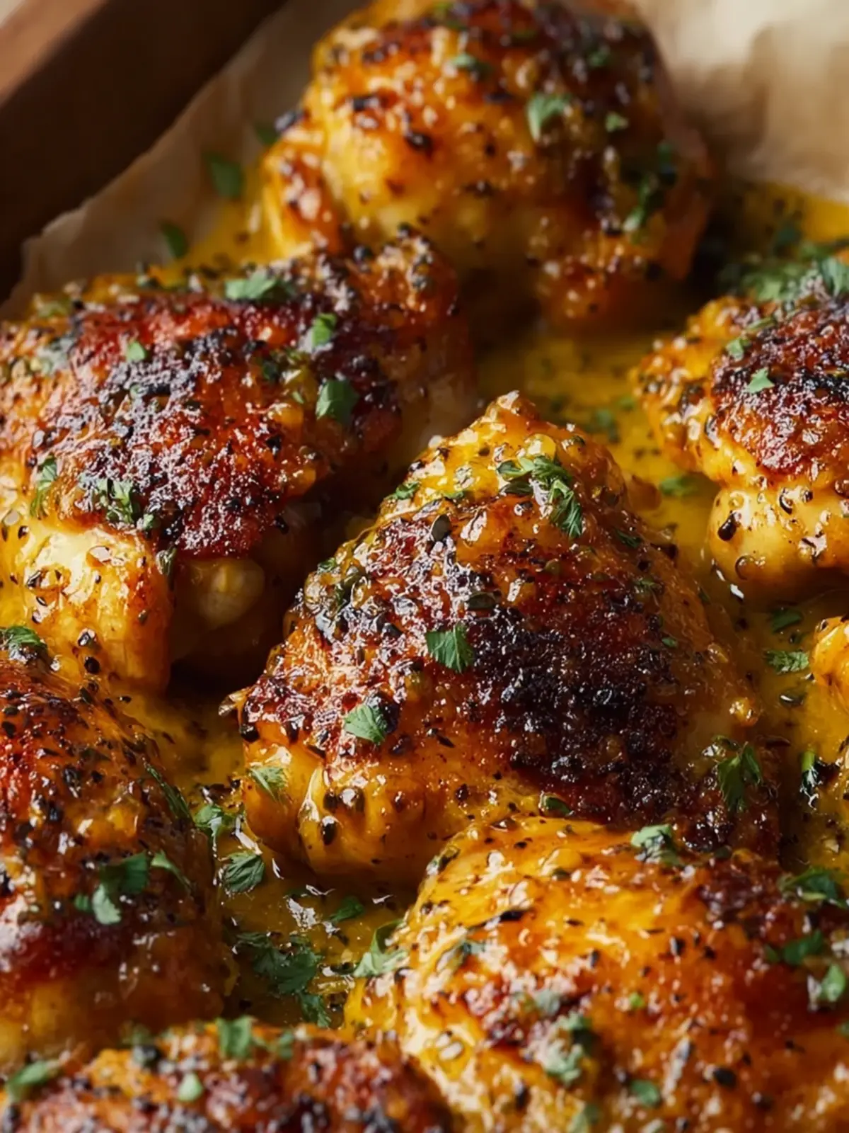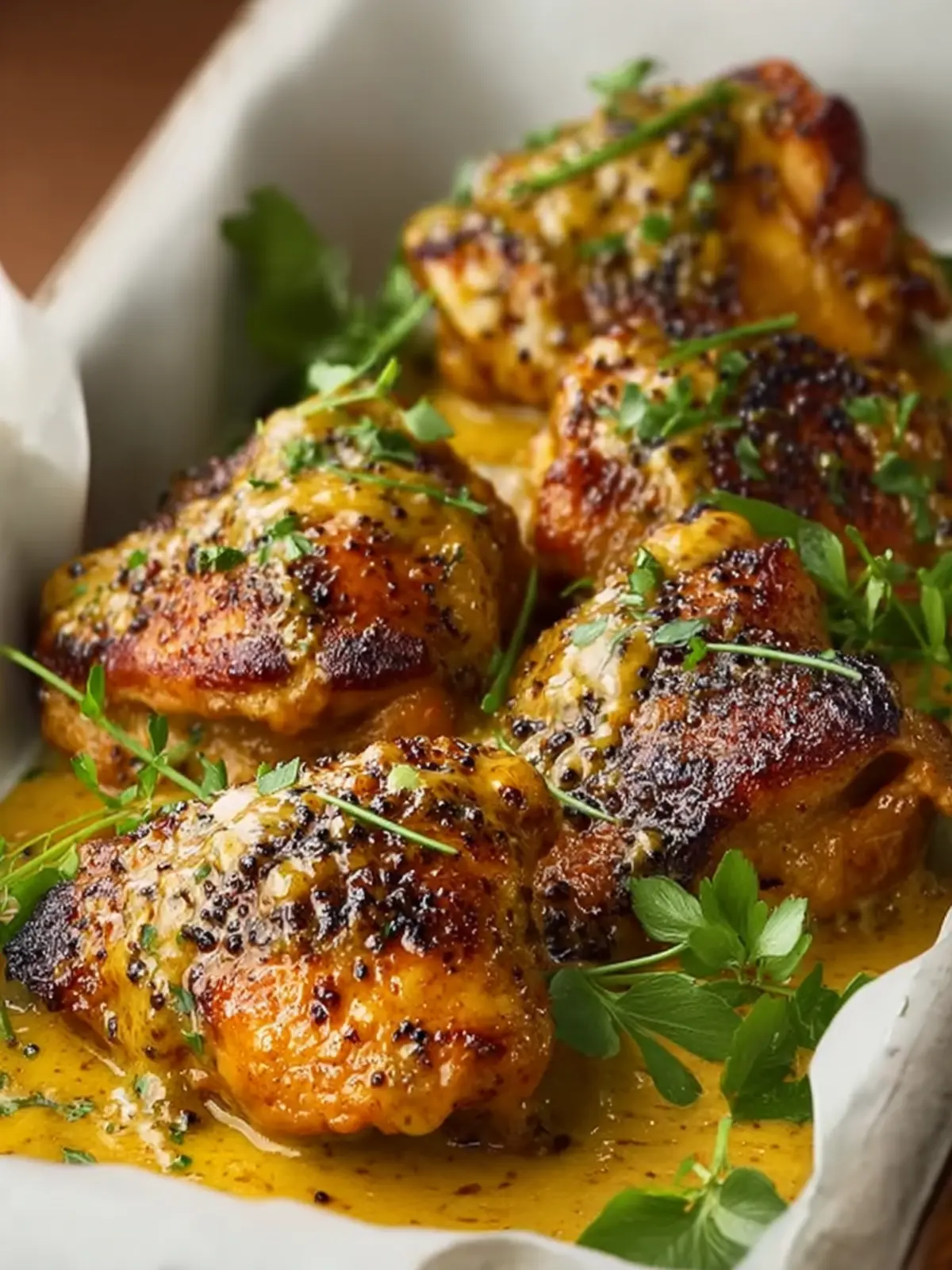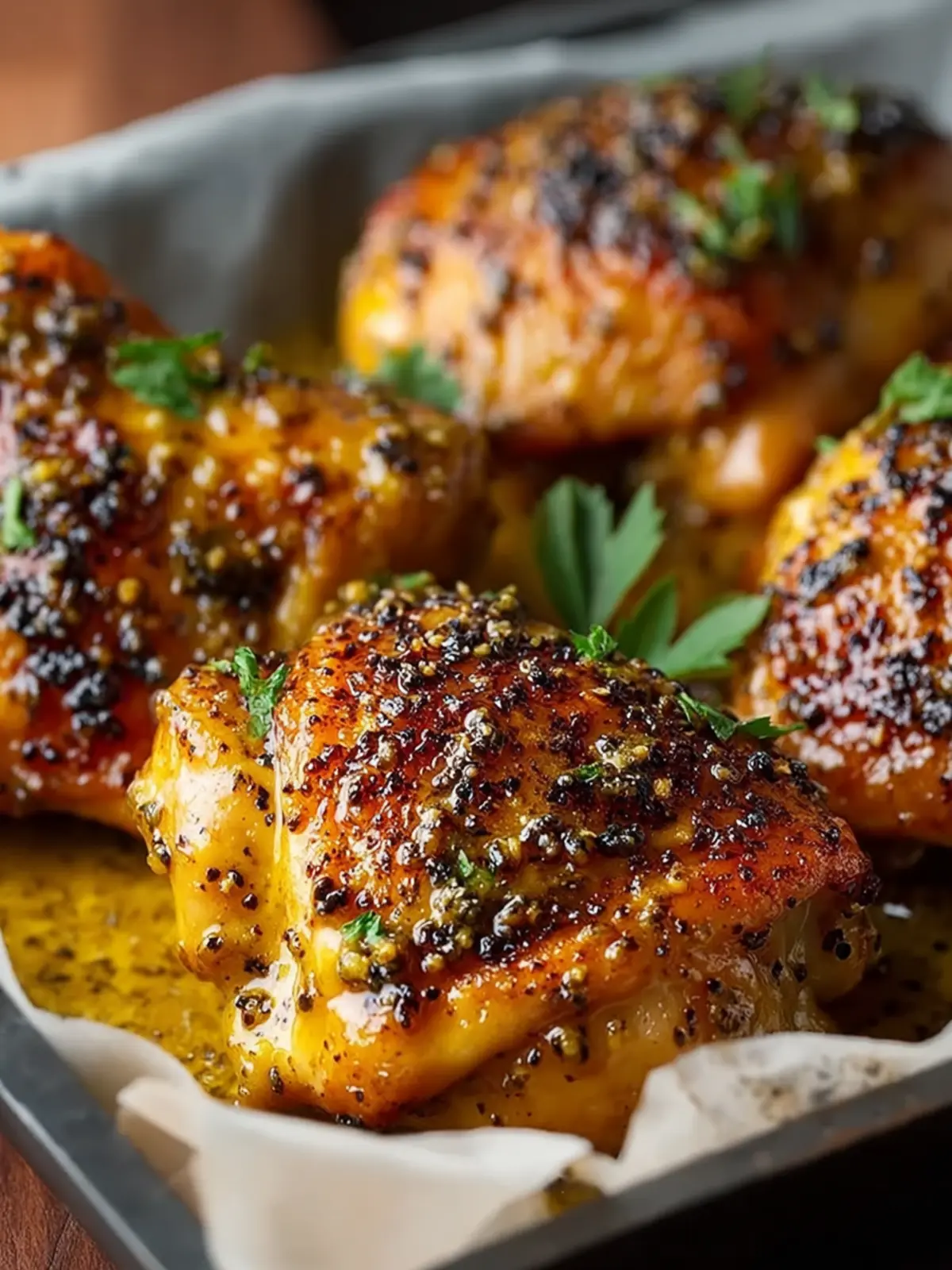 Juicy and flavorful chicken thighs marinated in a honey mustard sauce, baked to perfection.