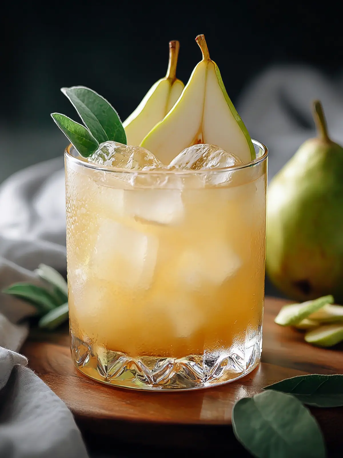 A refreshing cocktail made with pears, ginger, lemon juice, and sparkling water or ginger ale, perfect for warm weather.