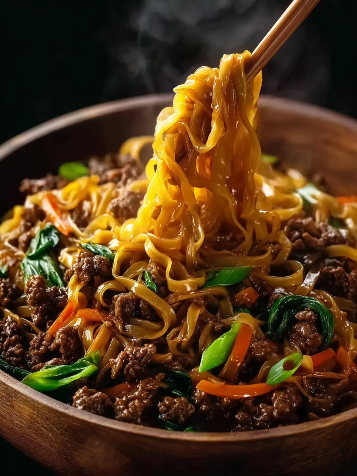 Flavor Explosion: Each bite of Mongolian Ground Beef Noodles bursts with a perfect blend of soy sauce, ginger, and garlic, igniting your taste buds and leaving you craving more.