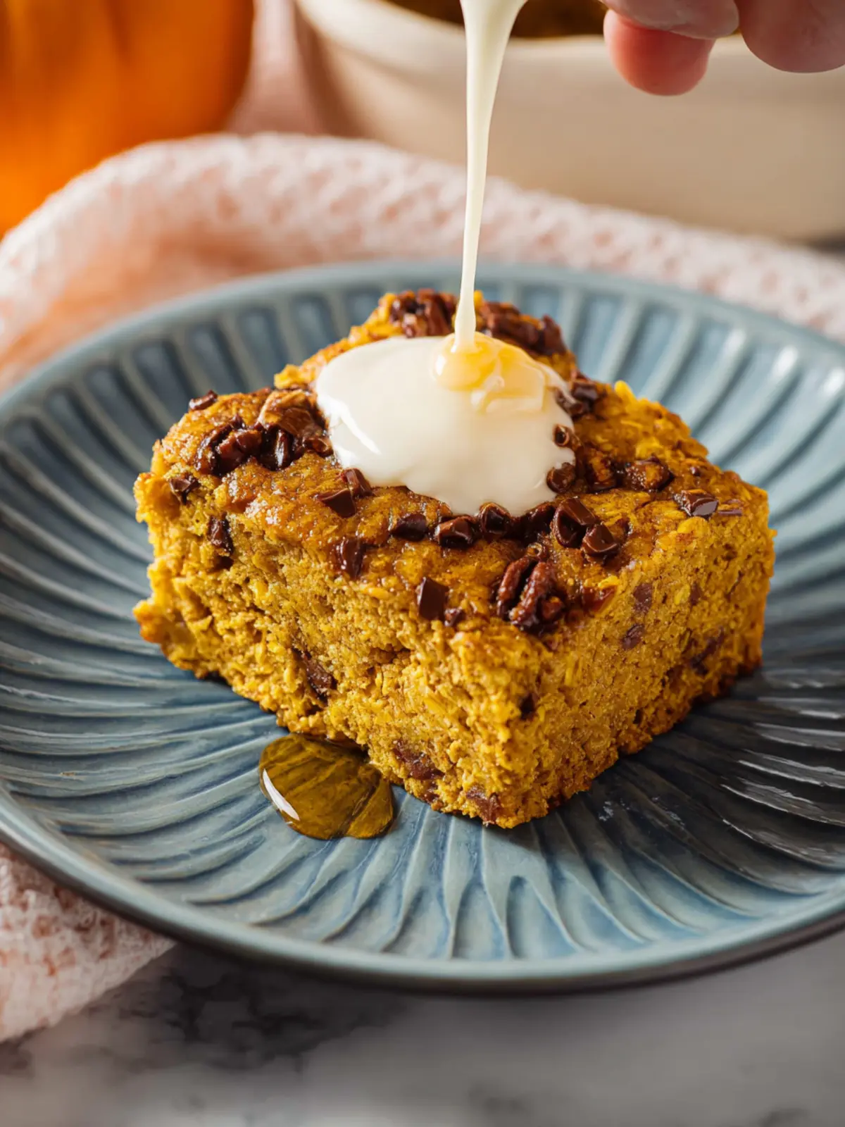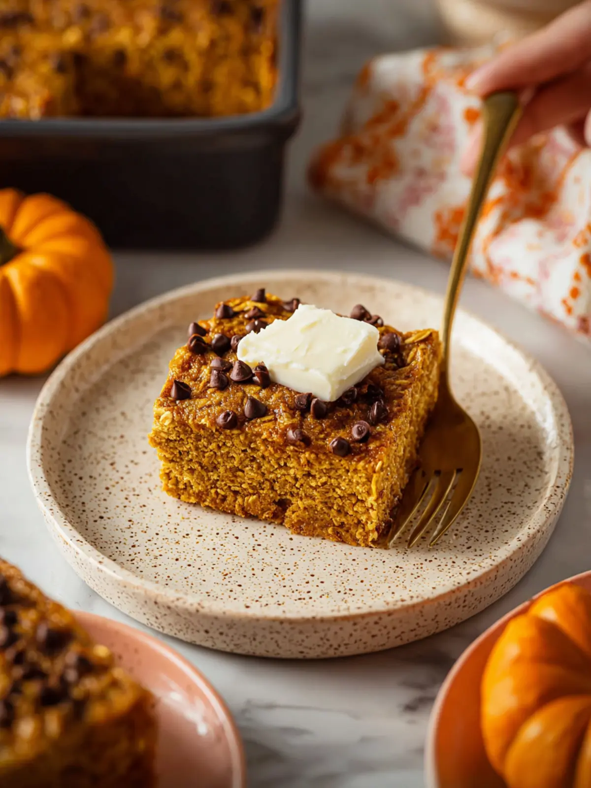 A delicious and healthy pumpkin oatmeal bake that’s perfect for breakfast or a snack!