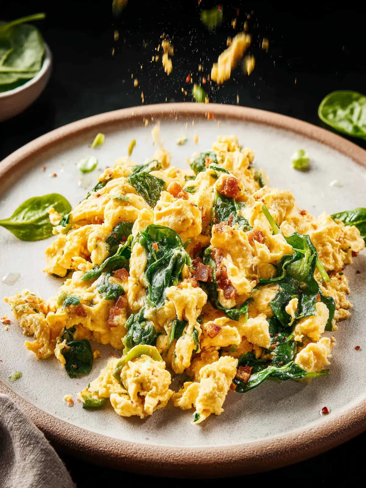 Fresh herbs can transform your scrambled eggs into a garden of flavor. A sprinkle of basil, oregano, or even chives not only enhances the taste but also brings a vibrant, colorful appeal. The herbs mingle with the eggs and spinach, creating a delightful aromatic experience.