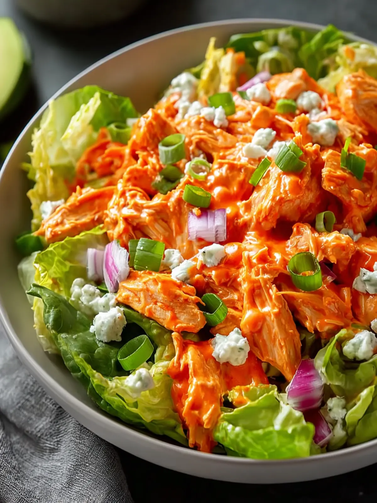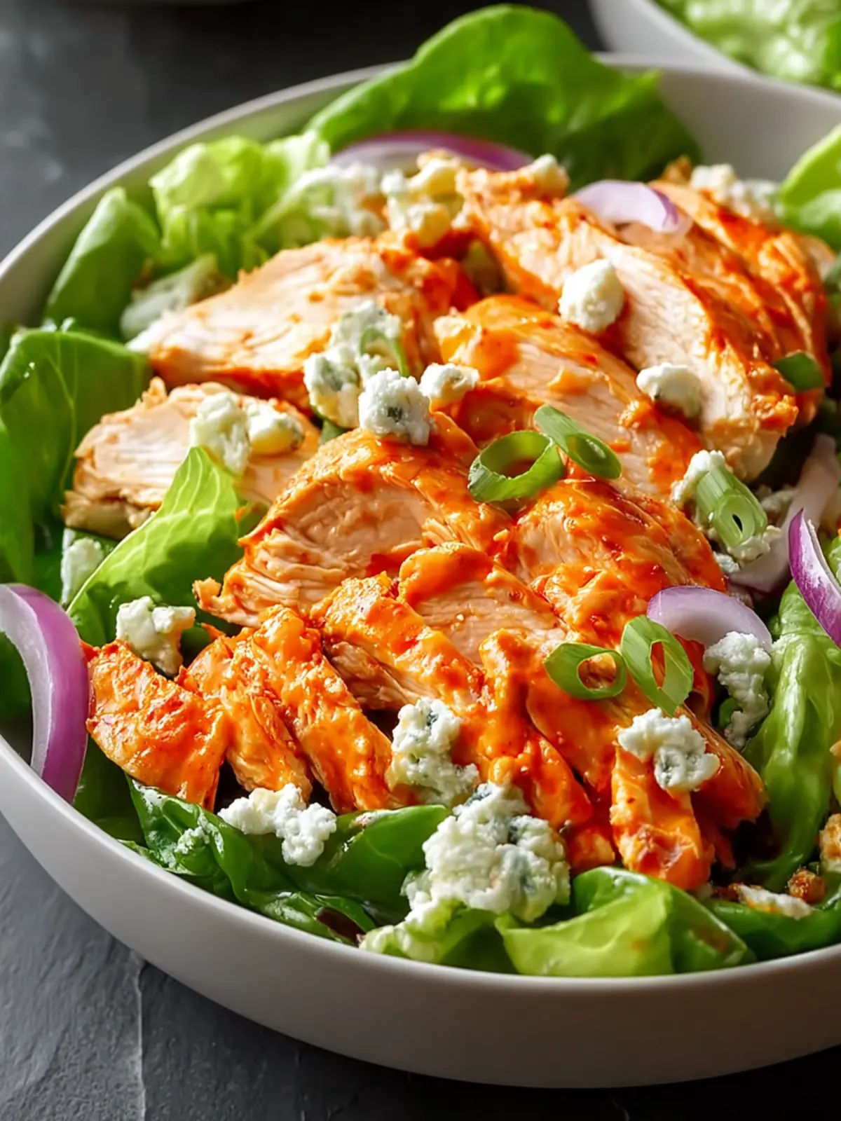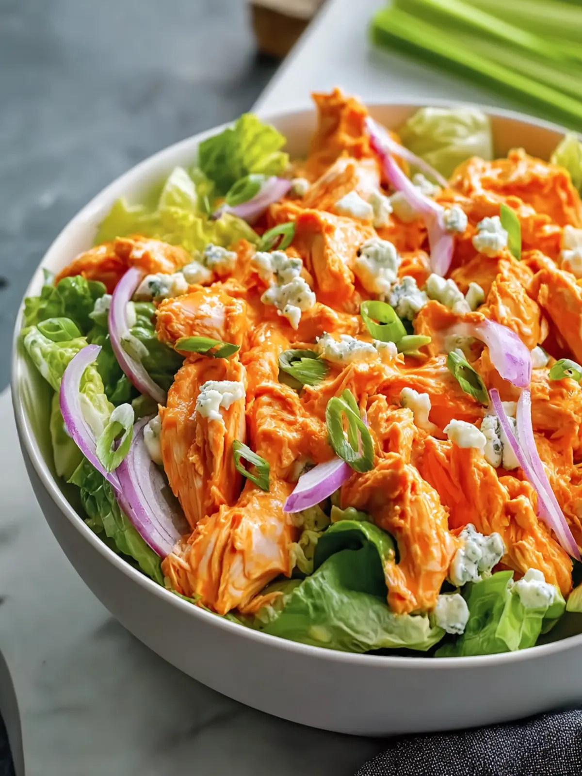 One great way to enjoy your salad is by serving it atop a bed of crunchy romaine lettuce. The crispness of the lettuce contrasts beautifully with the richness of the buffalo chicken, creating a delightful texture.