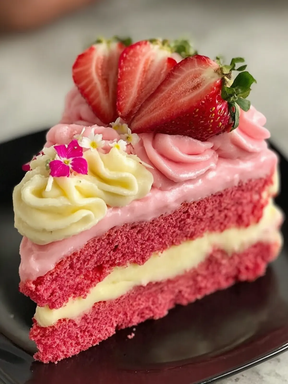 Imagine a scene where a sun-kissed kitchen fills with the sweet aroma of baked goods, and the stars of the show are none other than the delightful strawberry pink velvet cake slice. This enchanting treat, with its rich, velvety texture and a pop of vibrant pink, evokes feelings of nostalgia and warmth. It’s the kind of cake that can transport you back to your childhood, where every celebration—be it a birthday, afternoon tea, or a spontaneous gathering—deserved a slice of cake that was both visually stunning and deliciously sweet.