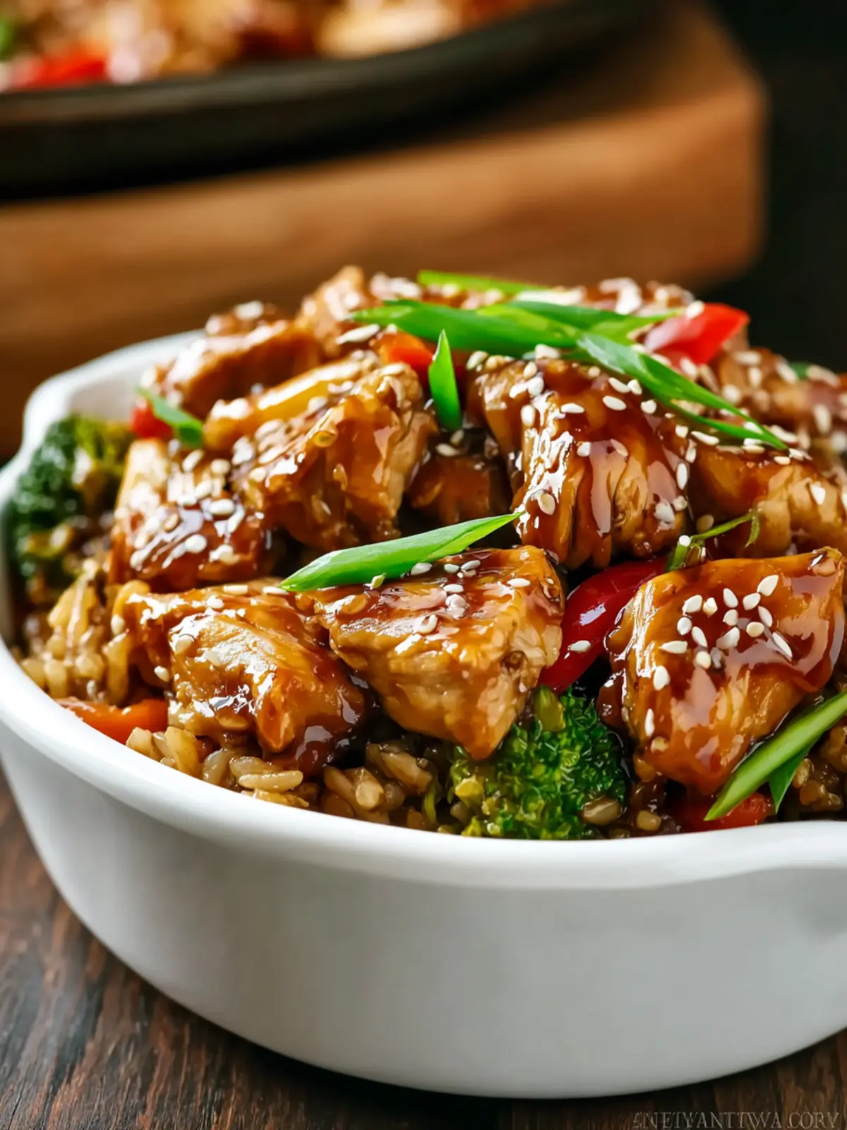 - Garnish with sesame seeds and sliced green onions before serving.
